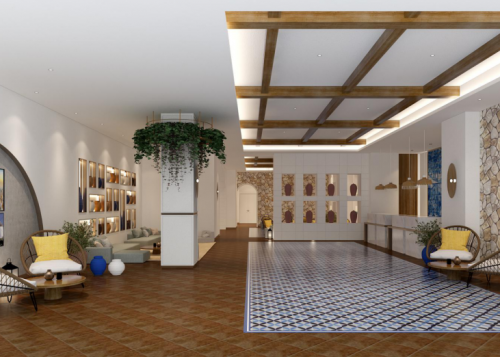 欧暇·地中海酒店的室内空间设计,极具欧亚非大陆风情的特色拱形门、延伸到客房别具一格的地中海文化石及磁盘画,无不全方位地诠释了自带时尚元素地中海文化的精髓。将复古浪漫的地中海风格特色尽情展现,让旅居体验到原汁原味的地中海生活氛围。