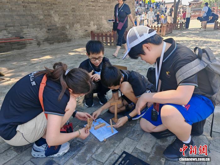 海外华裔青少年探访山西应县木塔 体验斗拱之巧