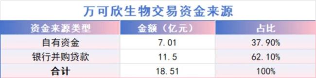 万可欣生物的交易资金来源包括自有资金7.01亿元和银行并购贷款11.50亿元。贷款期限不低于7年,还款来源预计为上海生物医药并购私募基金及上海医药集团的出资资金及合法收益。