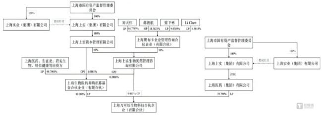 根据万可欣生物的《伙伴协议》约定,其控制主体为上海上实生物医药管理咨询有限公司(以下简称“上实医药”)。层层穿透万可欣生物的股权,上海国资委通过一系列嵌套股权关系实现间接持股,又与产业龙头的“专业基因”在同一框架内交织,促成地方国资与产业资本的深度融合。