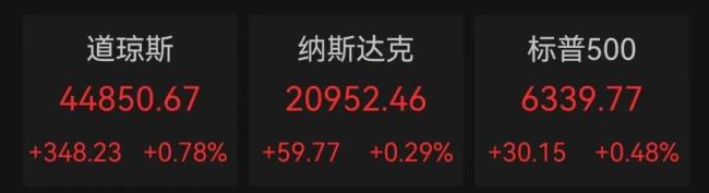 7月23日,美股三大指数集体高开,但纳指一度翻绿。截至发稿时,道指涨0.78%,纳指涨0.29%,标普500指数涨0.48%。