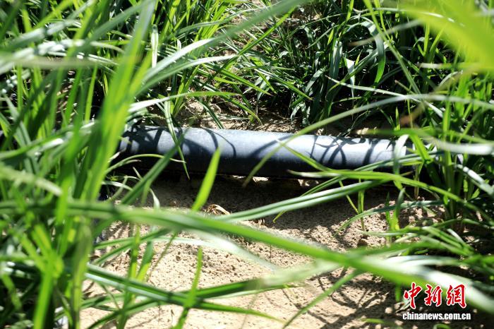 膜下滴灌系统通过细密滴头,将水与肥料精准送达油莎豆根部,科技赋能让种植更高效。李筱 摄