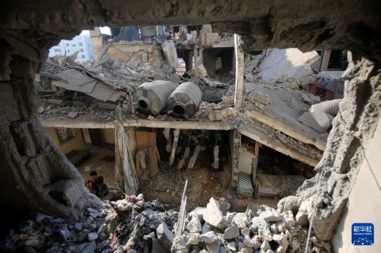 这是7月23日在加沙城南郊泰勒哈瓦地区拍摄的以军空袭后的废墟。新华社发(里泽克·阿卜杜勒贾瓦德摄)