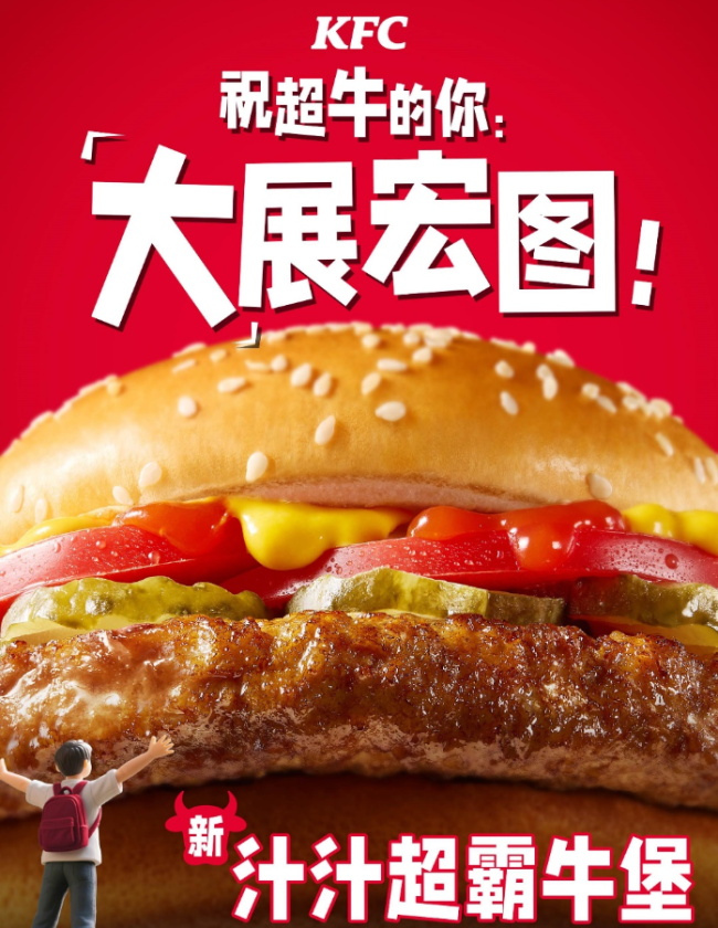 肯德基“中国味”更浓。近日,肯德基推出全新产品“汁汁超霸牛堡”,主打大肉饼的高性价比。汁汁超霸牛堡牛肉饼重达130g,主打超霸牛肉饼更大更厚。