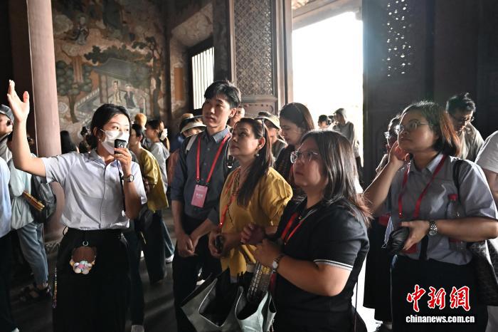 8月6日,山西省大同市,来自16个亚洲国家的18位驻华外交官参观访问辽金寺院华严寺,交流文化遗产保护和传承的经验。中新社记者 韦亮 摄