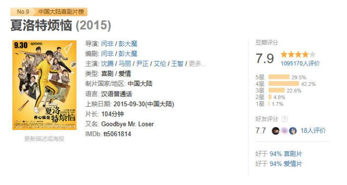 《夏洛特烦恼》口碑领先开心麻花出品的很多影片。