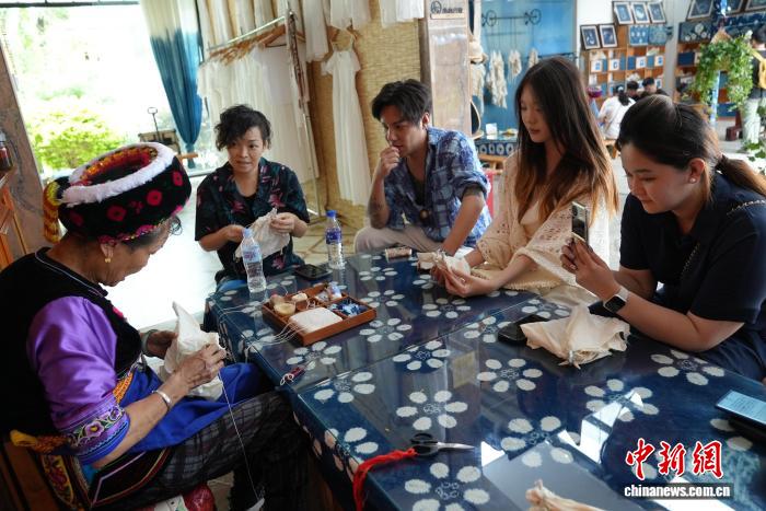 图为游客在云南大理体验白族扎染。白玲 摄