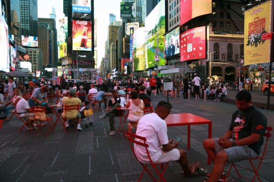 6月24日,人们在美国纽约时报广场休闲。新华社记者刘亚南摄