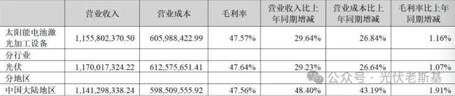 上半年,公司太阳能电池激光加工设备实现营收11.56亿元,更令人欣喜的是,其毛利率上升了1.16%至47.57%,这在当前的行业中实属难能可贵。