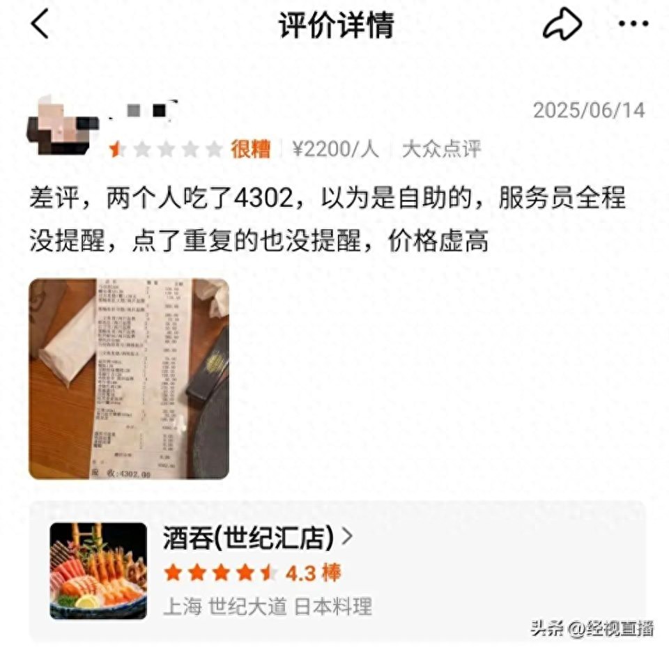 上海浦东:顾客日料店消费4302元引热议!