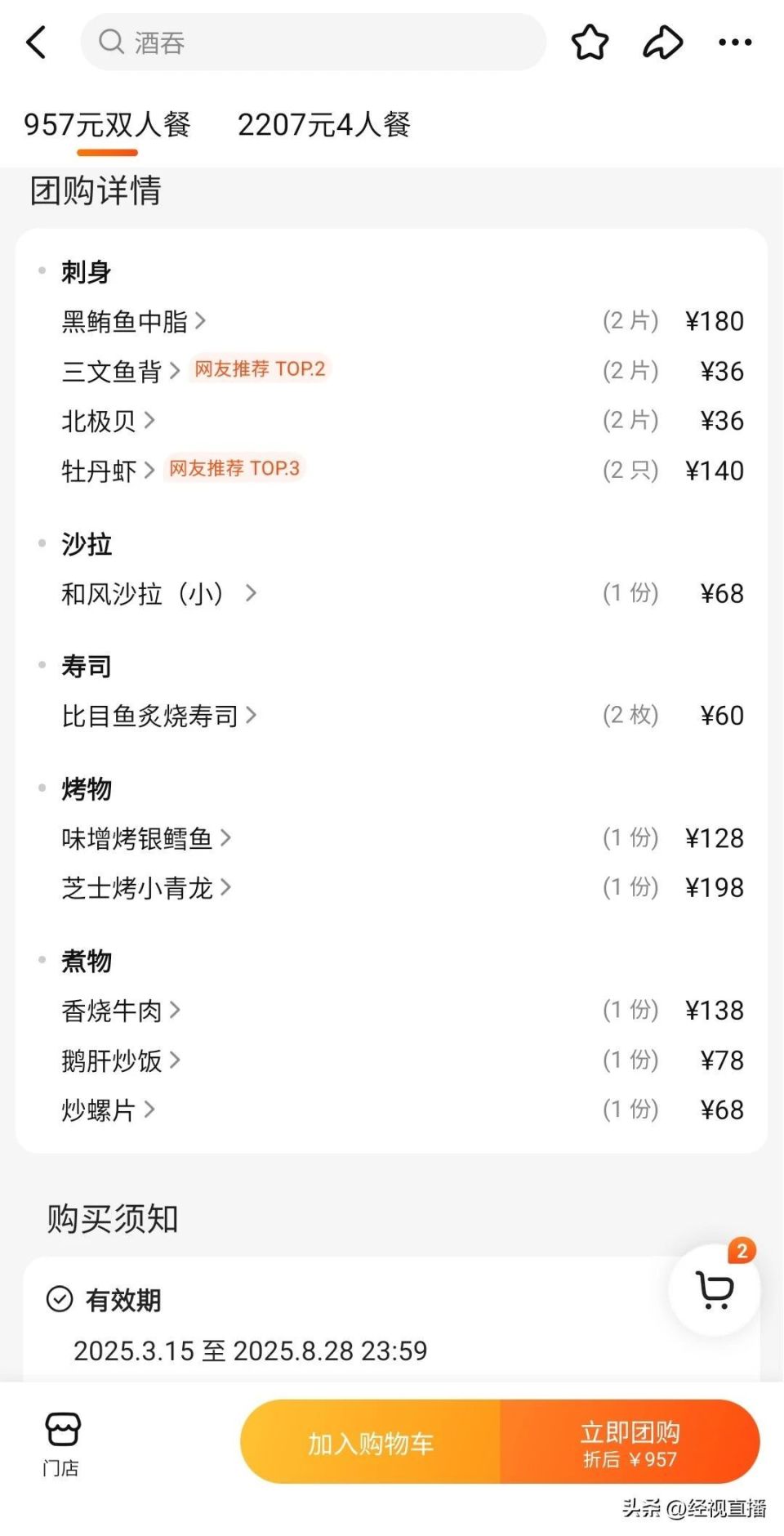 据其描述,自己曾向工作人员询问为何不提前告知该套餐不是自助性质,但对方表示,“提醒的话很不礼貌”,最终她还是支付了这笔费用。该网友表示,选择该店前曾在点评平台搜索“自助日料”,而该门店就位于搜索结果当中。并且由于该店双人套餐标价为960元,故自己也认定了此价格对应的应该是自助餐。