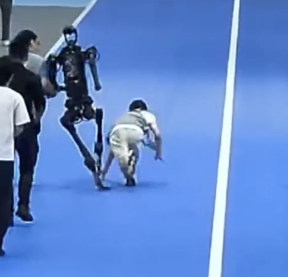 宇树机器人埋头猛冲 撞翻友商操控员