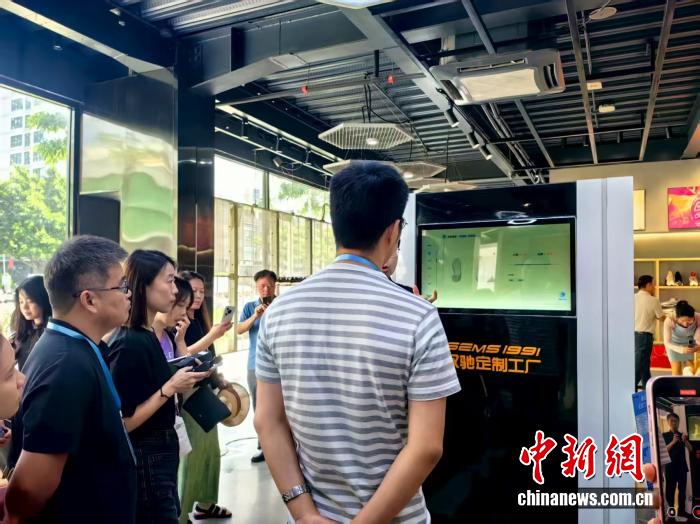 记者现场体验“双驰鞋业大规模个性化定制”。中新网记者 闫旭 摄