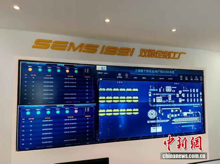 双驰定制工厂大规模个性化定制产线SCADA系统。中新网记者 闫旭 摄
