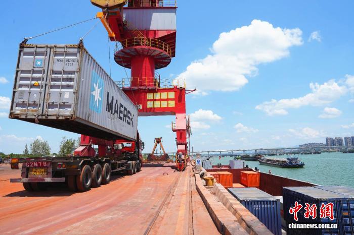 新干县交通运输局相关负责人表示,河西综合码头首次发出箱包集装箱,标志着新干县水运经济与特色产业融合发展迈出关键一步。这不仅有效降低本地箱包企业物流成本,还打通了江海联运新通道,推动新干产品加速“出海”。