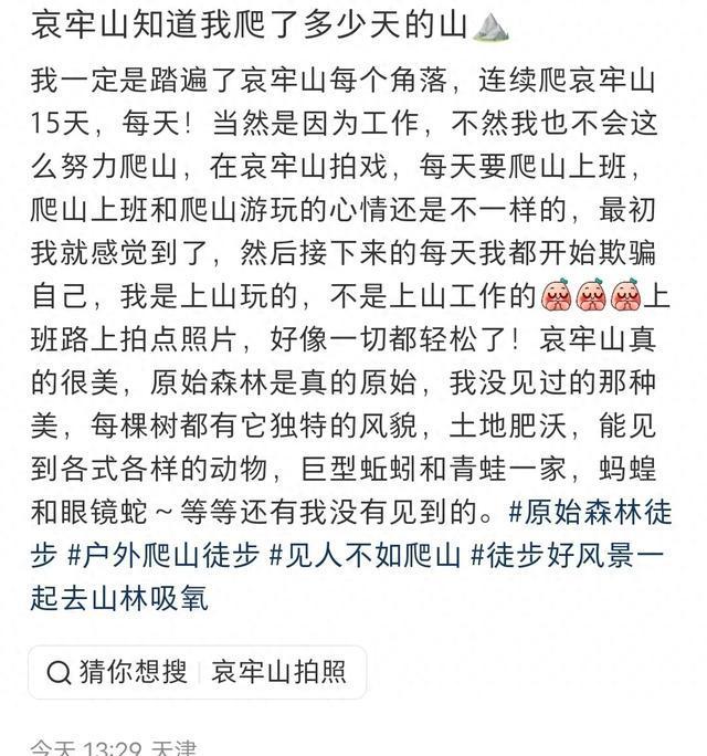 不过要提醒大家,普通人不要轻易尝试这种“极限通勤”,毕竟不是每个人都能像女明星这样把爬山当日常。袁姗姗的操作确实给都市打工人提供了新思路:谁说通勤不能是一种享受?看着她分享的照片,可以理解什么叫“累并快乐着”。虽然要早起爬山,但沿途的风景、清新的空气和远离喧嚣的宁静是写字楼里永远无法提供的。