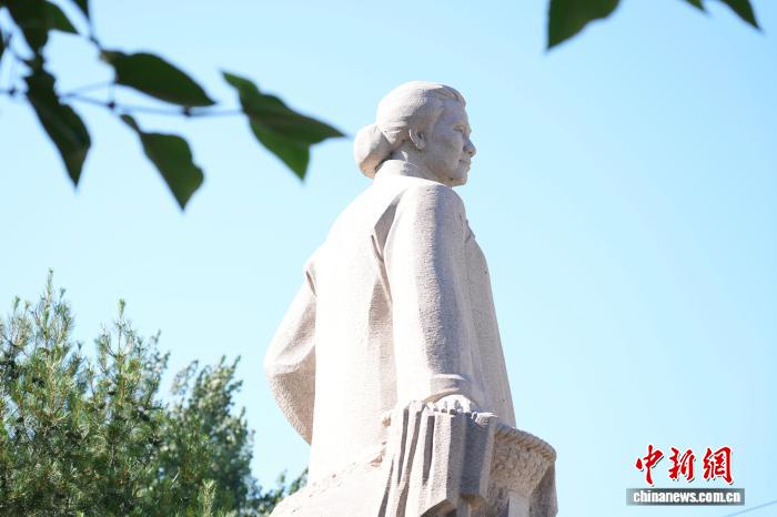 在北京密云石城镇张家坟村,有一位名叫邓玉芬的英雄母亲。在抗战烽火中,她舍家纾难,把丈夫和5个孩子送上前线,最终全部为国捐躯,用生命谱写了一曲爱国壮歌。图为7月17日,位于张家坟村的邓玉芬雕塑主题广场,邓玉芬的雕塑静静伫立在故乡的山水之间。中新社记者 王紫儒 摄