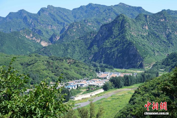在北京密云石城镇张家坟村,有一位名叫邓玉芬的英雄母亲。在抗战烽火中,她舍家纾难,把丈夫和5个孩子送上前线,最终全部为国捐躯,用生命谱写了一曲爱国壮歌。1933年5月31日,南京国民政府和日本政府签订了丧权辱国的《塘沽协定》,邓玉芬所在的村庄被划入伪“满洲国”。为了糊口,邓玉芬一家被迫搬到村东南的猪头岭山上开荒度日。图为7月17日,在猪头岭山上拍摄的如今的张家坟新村。中新社记者 王紫儒 摄