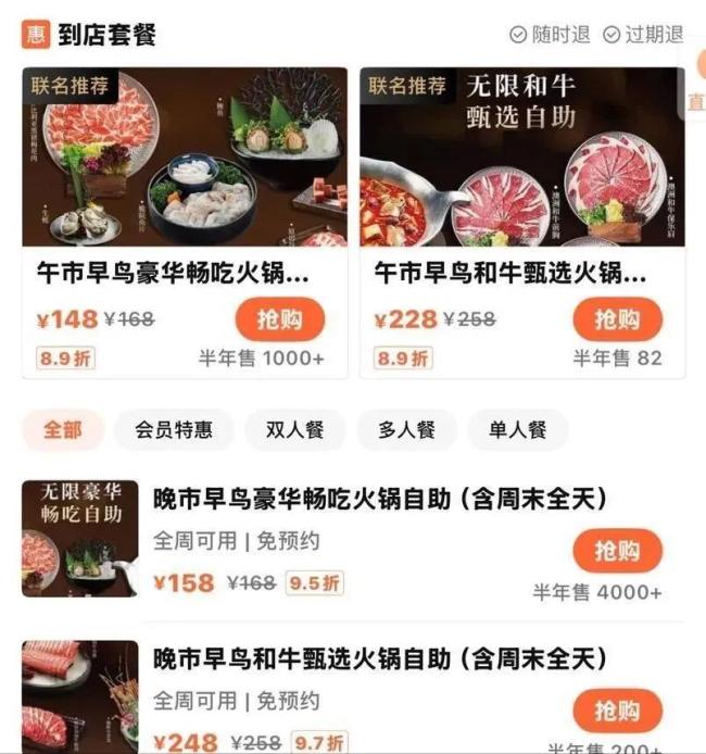 定位高端的湊湊也开始尝试亲民的自助模式。近日,湊湊在深圳、南宁、珠海三城四店推出限时放题火锅自助。价格上,品牌公众号显示,该自助午市早鸟价分为148元和228元两档。同时,产品包含多个种类,根据点评平台上的团购套餐,148元可选4款锅底,还包括10款肉类、8款海鲜以及蔬菜小食等,228元则是包括8款锅底、4款和牛、各种肉类卷以及每人限量半只的小青龙。