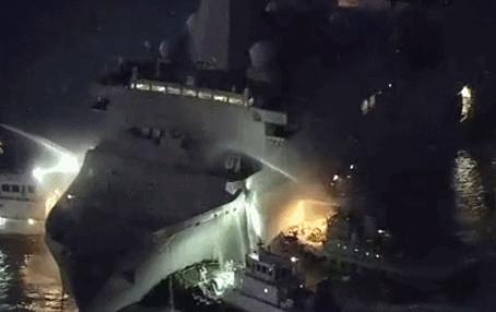 驻日美军万吨舰艇起火 烧了12小时 美军反复求助日方