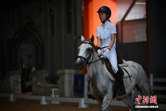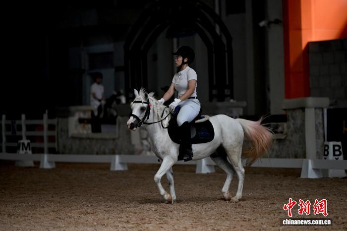 图为参赛选手正在进行盛装舞步比赛。中新社记者 韩苏原 摄