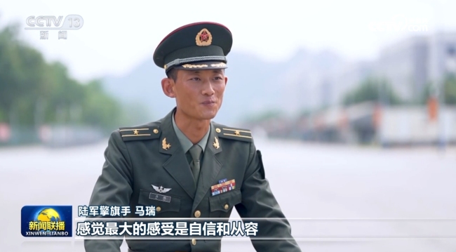 马瑞曾三次以基准兵的身份走过天安门,这次他成为了陆军军旗的擎旗手,深感责任重大。80年前的抗日战争中,尽管装备简陋,但英勇的战士们仍打败了敌人的飞机大炮;如今,在阅兵训练场上,新式步枪枪刺划出的银色光芒与枪托撞击身体发出的铿锵声响,展现了新时代陆军官兵在岁月中传承红色基因的决心。