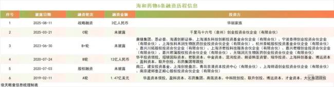海和药物的高额研发投入持续考验其资金耐力。天眼查显示,2025年3月及2023年6月,公司完成过由千里马基金、康缘集团等参与的两轮融资,虽未披露具体金额,但显然,这些资金仍难以覆盖其巨大投入。
