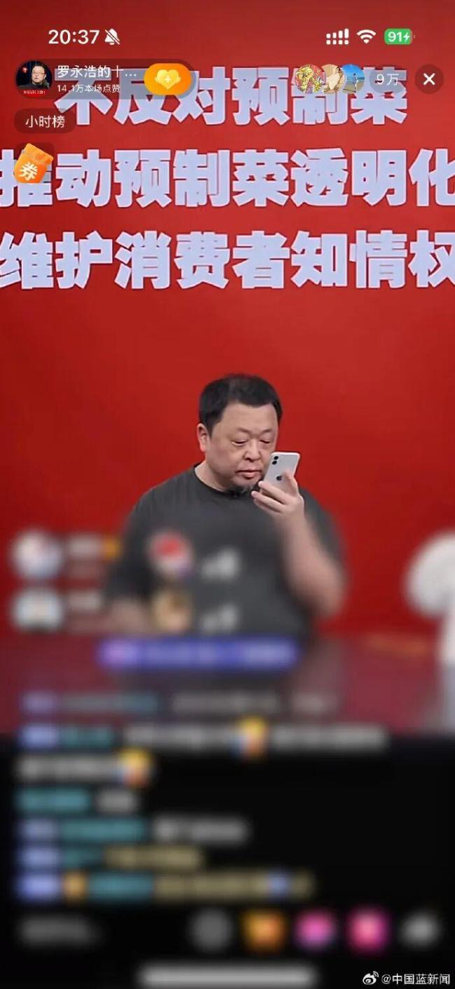 罗永浩直播谈西贝事件:支持者超90% 预制菜透明化成焦点