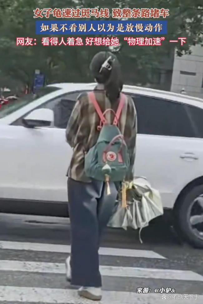 女子慢悠悠过斑马线致大堵车 网友:不知道还以为视频被延时播放