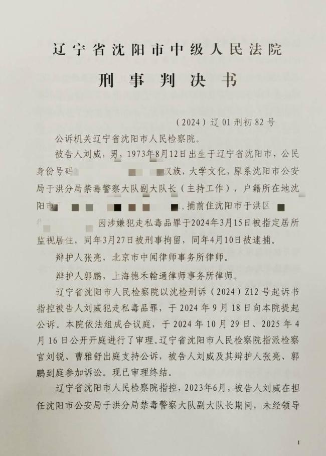 刘威原为沈阳市公安局于洪分局禁毒警察大队副大队长,主持工作。根据一审判决书,2023年6月,刘威在未向上级领导汇报的情况下,违规使用特情人员,通过境外聊天软件联系到一名泰国贩卖大麻的人员,让对方将样品邮寄至沈阳市公安局于洪分局所在地。同年12月18日,两名辅警按刘威指示取包裹时被控制,查获160.25克大麻叶。几天后,刘威主动交代,公安机关又从另一包裹中查获1352.09克大麻叶。经鉴定,这些大麻叶中均检出四氢大麻酚成分。