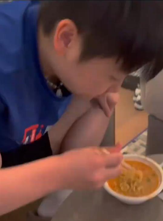 孙颖莎训练后蹲地吃泡面!