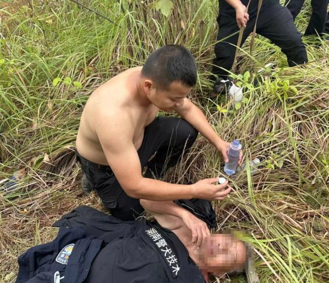 终于在14日15时许,训导员范杰携带的追踪犬“小八”突然加速,挣脱牵引,钻进近2米高的茅草丛。老人蜷缩在地上,浑身发抖、意识模糊、呼吸微弱,情况危急。“快!把警服脱下来!”民警曹建国、刘坚邦毫不犹豫脱下自己的警服,迅速盖在已经出现失温症状的老人身上。在民警对其进行紧急保温和补水措施后,老人状态逐渐好转,意识也慢慢恢复。随后120抵达现场,老人被紧急送医救治。