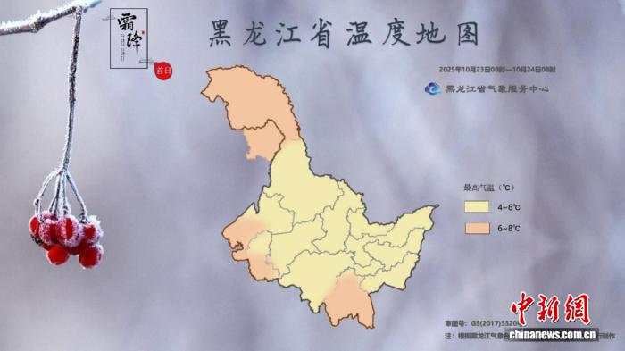 2025年“霜降首日”黑龙江省天气地图(2025年10月23日8时至24日8时)。黑龙江省气象局供图