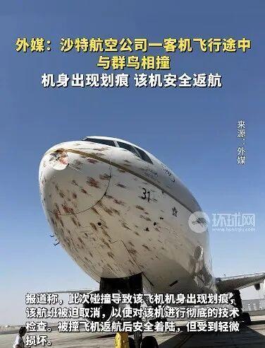 沙特一波音客机飞行途中撞鸟 航班取消进行检查