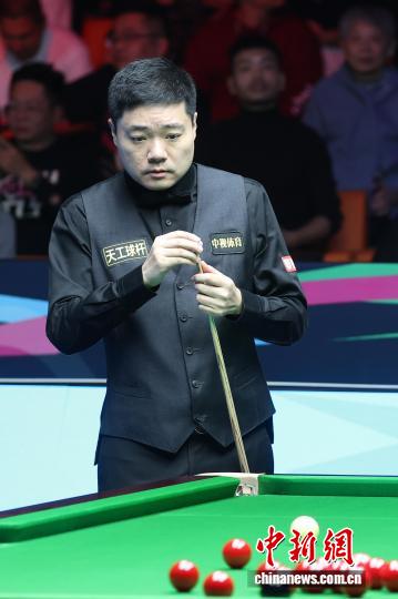 11月2日,2025世界斯诺克巡回赛国际锦标赛在南京开赛,丁俊晖、赵心童、奥沙利文等高手亮相赛场。图为丁俊晖在比赛中。中新社记者 泱波 摄