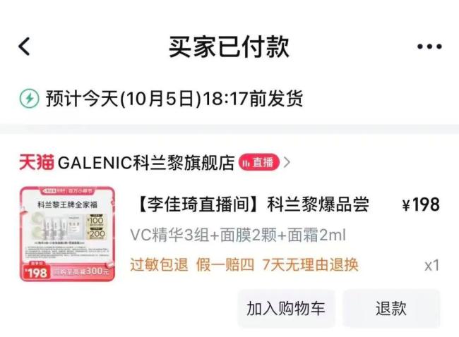 杨心怡和很多年轻人选择购买中样,便宜、实用且体面。过去一个月,26岁的杨心怡重新找回了购物的刺激。傍晚6点,她会第一时间离开办公室,在路上点好三明治当晚餐,只为能专心蹲守李佳琦直播间的“中样”。如果顺利,她能用198元的价格拿下科兰黎的“小美盒”,包含三组VC精华、两颗小金珠面膜和两毫升面霜。而在天猫官方旗舰店,科兰黎24组精华的价格是1729元,京东12组的价格为840元。抢到就是赚到,杨心怡想。