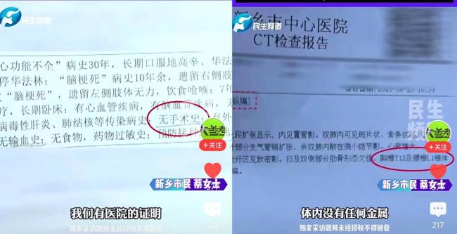 据殡仪馆工作人员解释,这些钢钉可能是老人生前手术留下的。但家属提供的医院证明及CT检查报告显示,老人生前并没有做过手术,因此怀疑这并非自家老人的骨灰。