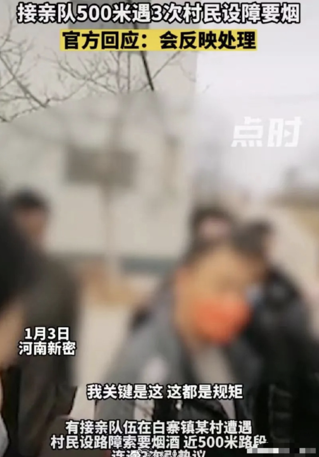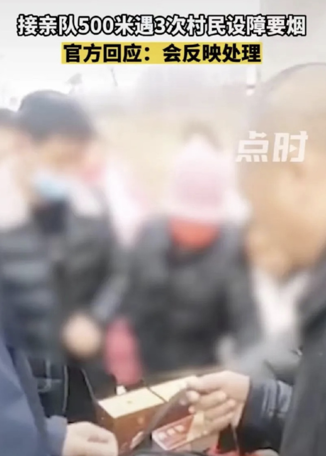 婚车被拦截索要50条烟 新人打车离去 闹喜变闹事