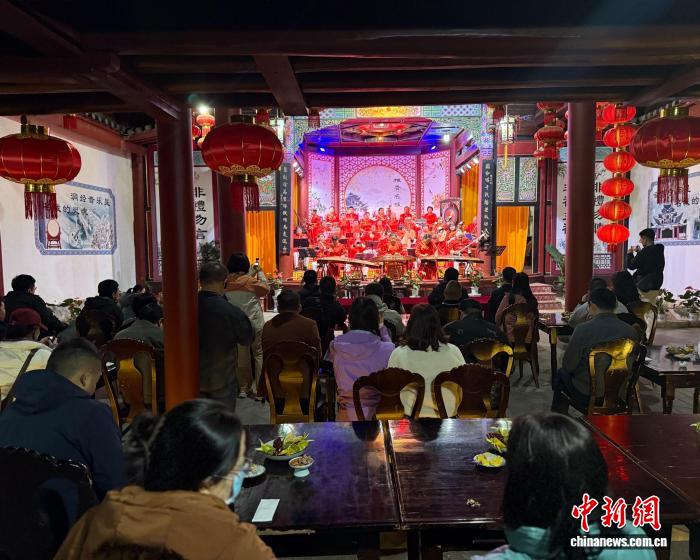 11月18日,服务团成员在会泽古城欣赏、拍摄会泽洞经音乐。陆希成 摄