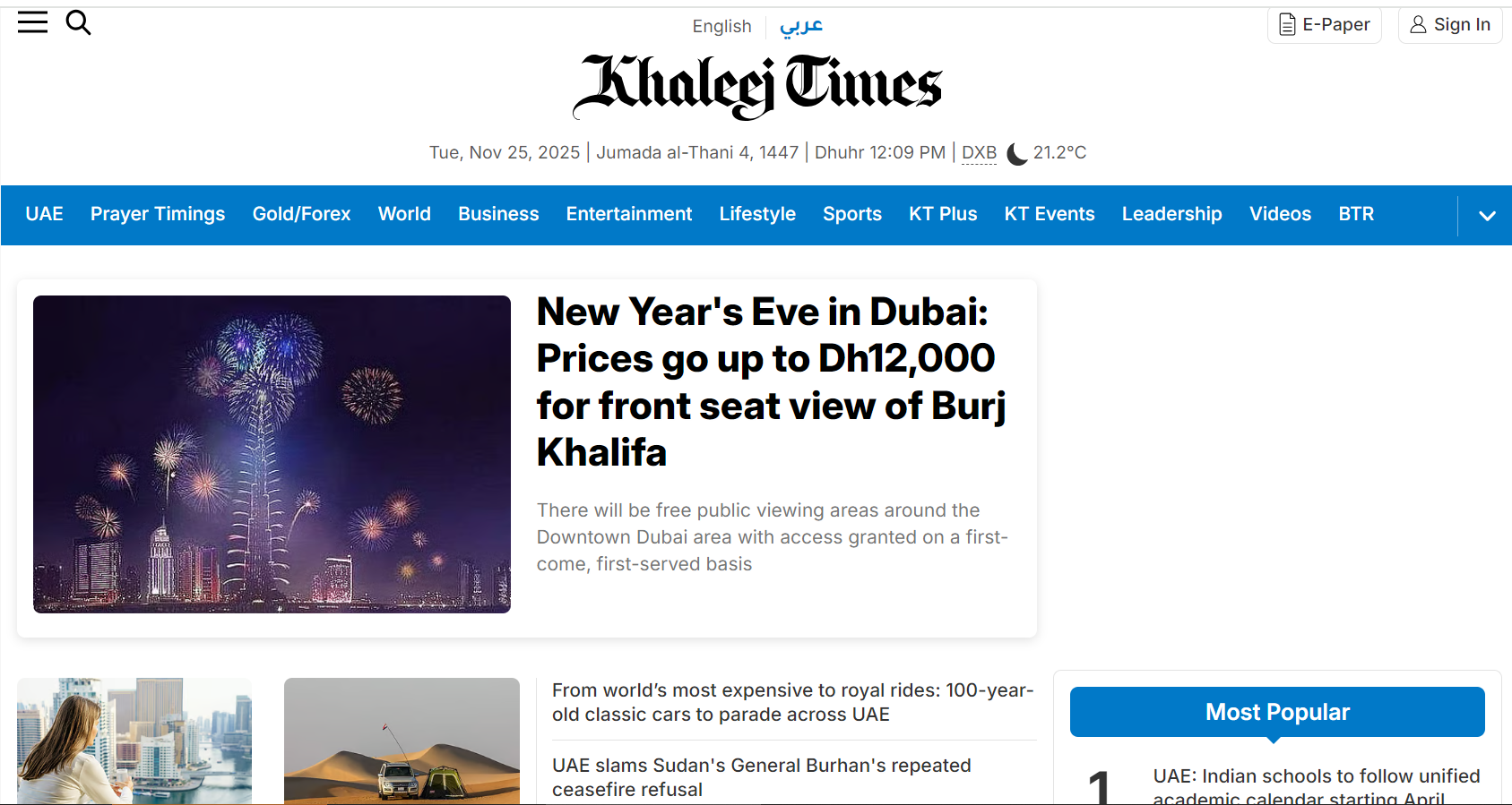 阿联酋元老级媒体Khaleej Times发稿资源开放