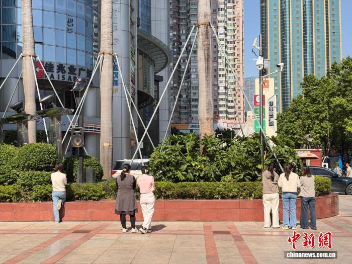 广州市民11月26日午间在广场上晒太阳取暖。王坚 摄