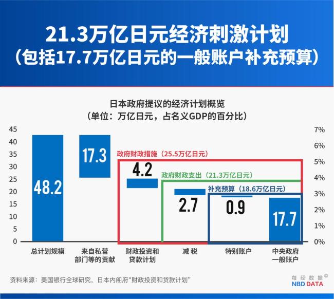11月21日,日本首相高市早苗领导的内阁批准了一项总规模约为21.3万亿日元(约合人民币9656亿元)的综合经济对策。这是高市早苗上任以来的首个经济刺激计划。