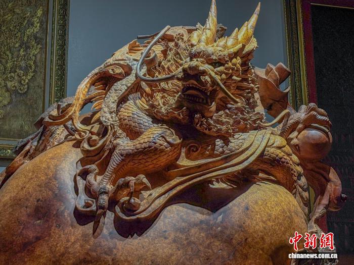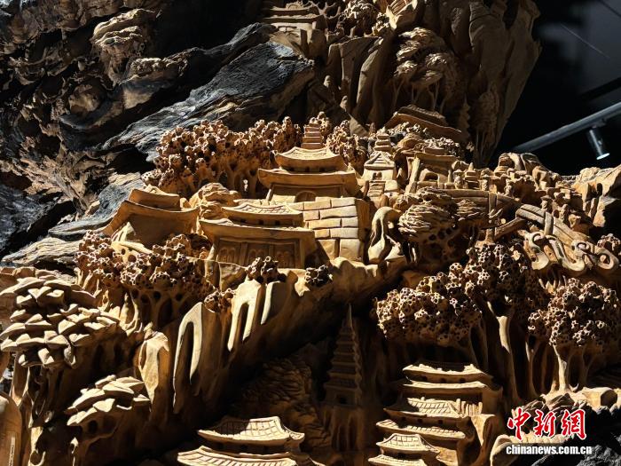 图为馆内展示的木雕艺术作品局部。中新社记者 潘雨洁 摄