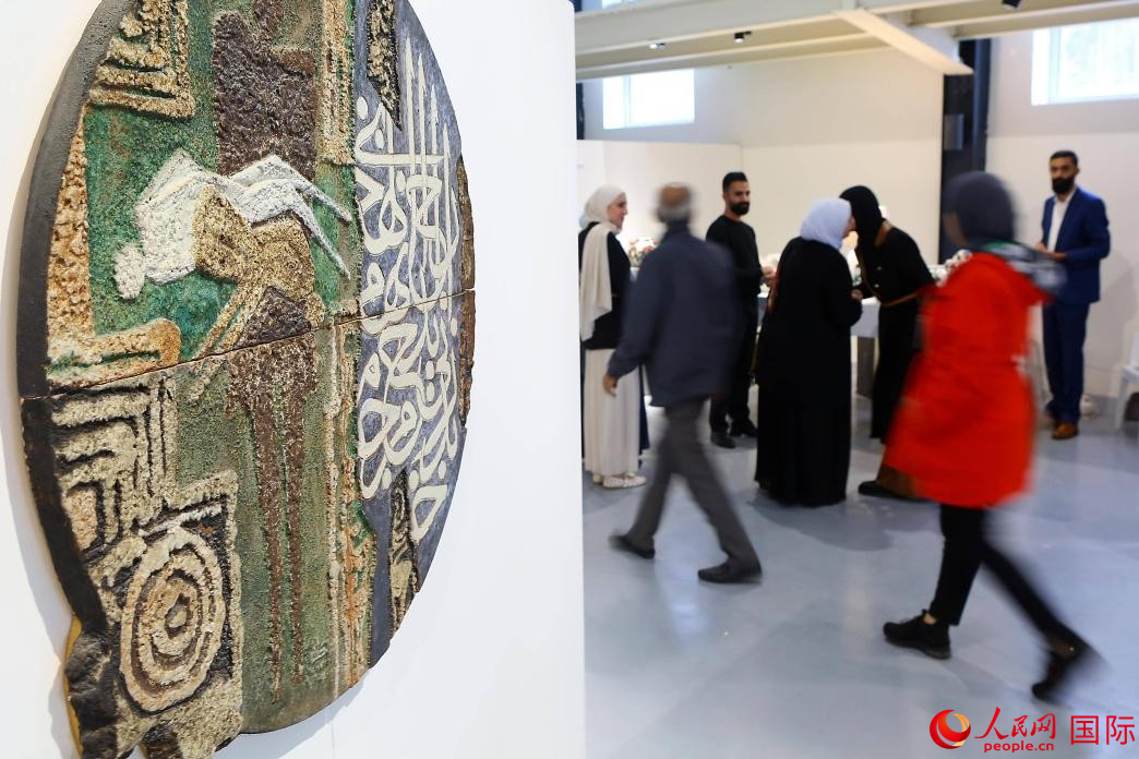 两名观众在欣赏陶瓷作品。人民网 纳达尔·达乌德摄