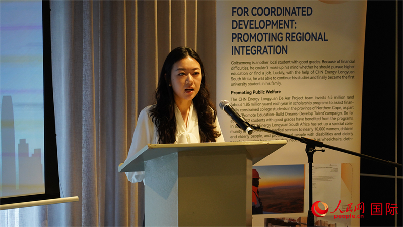 龙源南非公司项目经理关晴发表讲话。人民网 刘畅摄