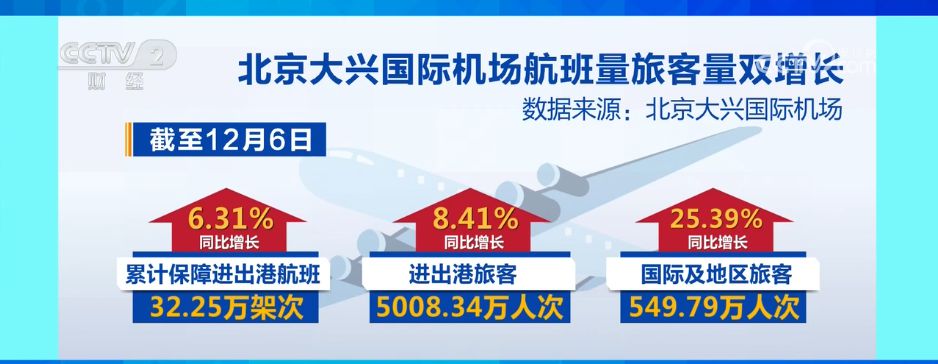 央视网消息:12月6日,北京大兴国际机场,年度旅客吞吐量首次突破5000万人次,刷新开航以来最高纪录。密集的航线网络叠加“民航+文旅”新玩法,让大兴机场热度攀升。
