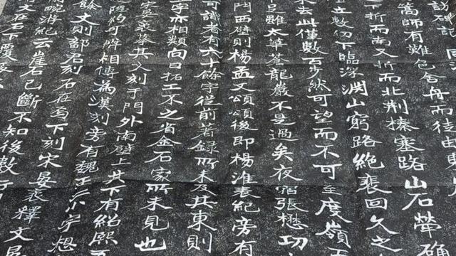 张晓光介绍,一套完整的摩崖拓印要经过清洗碑刻、裁剪宣纸、喷水润湿、上纸抚平、捶打定型、刷墨成像、揭取晾干等十几道工序。每道工序的“火候”都要花好几年才能掌握。纸张的湿度、捶打的力道、墨色的浓淡,每个细节都需经年累月地反复揣摩。纸过湿则洇墨,过干则离壳;捶打轻重的把握,全靠手腕数十载练习形成的记忆。这种手感没有捷径,全靠时间磨出来。如今,他仅凭墨色过渡的微妙层次,便能分辨出碑面毫米间的起伏差异。