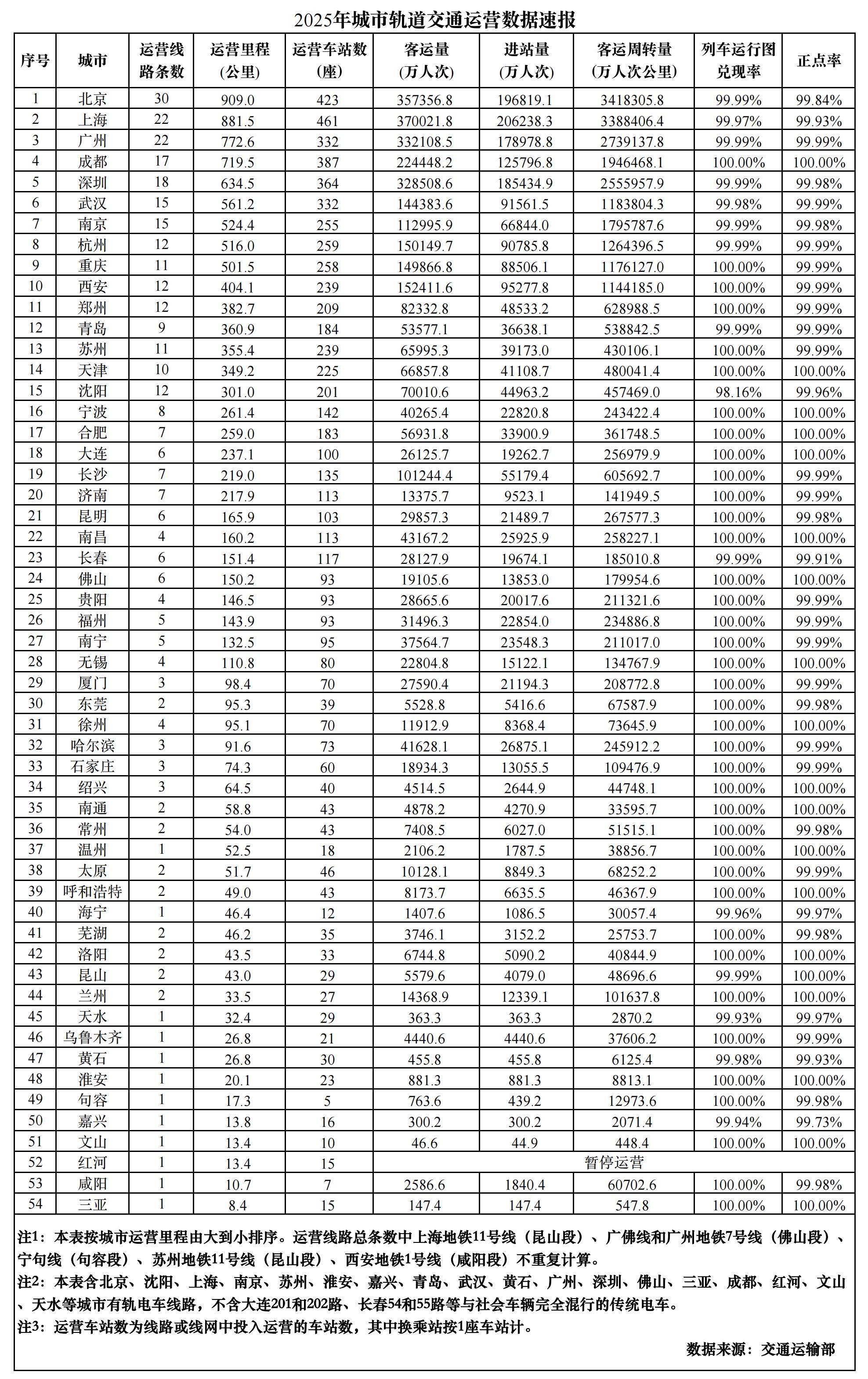 据交通运输部最新发布的数据,截至去年底,济南轨道交通运营里程达到217.9公里,一举跻身全国20强;全年121.2公里的新增里程,也使得济南成为2025年轨交新增里程“第一城”。