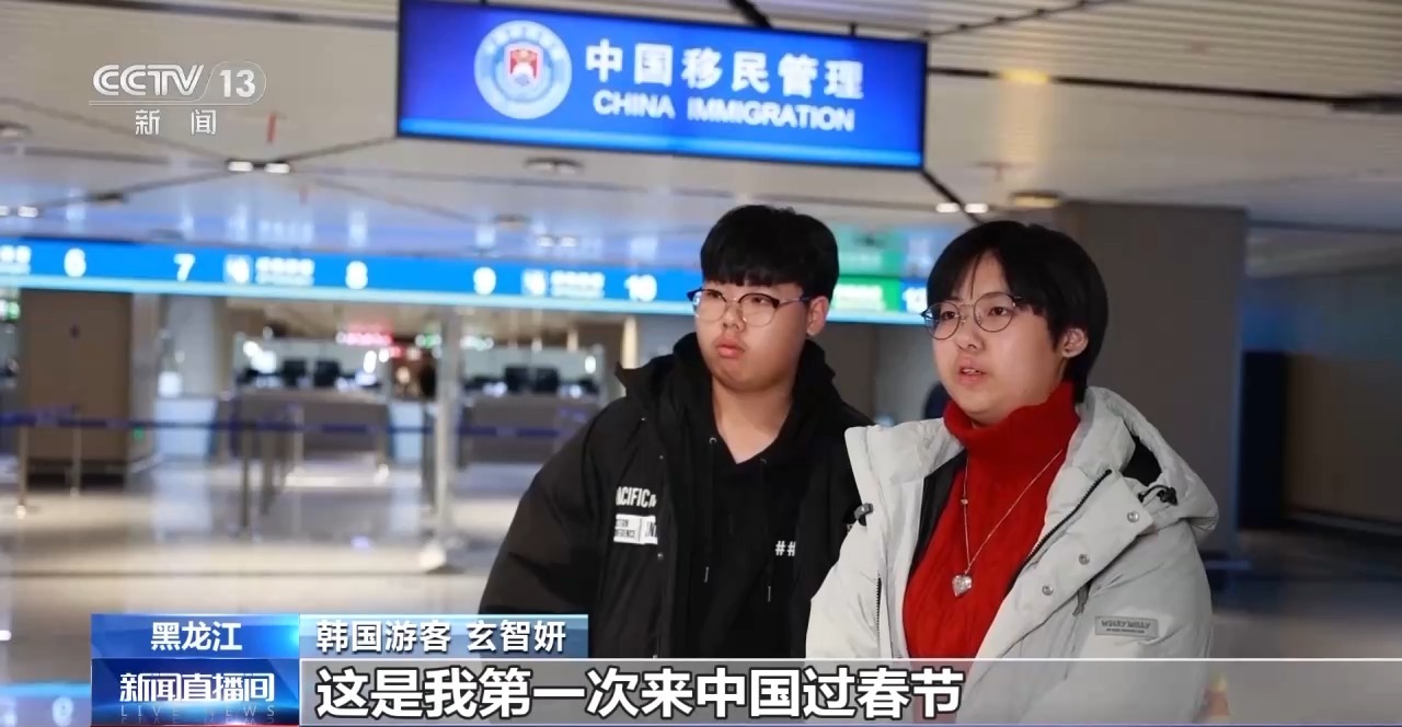 韩国游客 玄智妍:这是我第一次来中国过春节,感觉非常有趣。中国有太多想去的地方了,这次来哈尔滨,最期待的就是冰雪大世界,还想尝尝当地的各种美食。