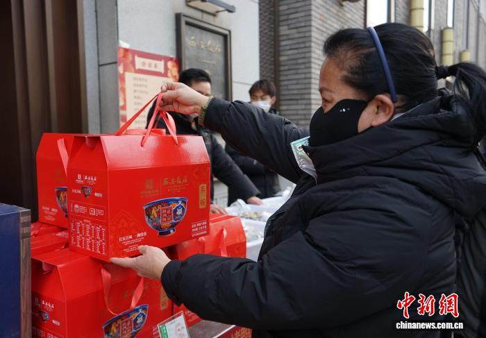 2月10日,西安民众购买关中八大碗礼盒。中新社记者 党田野 摄